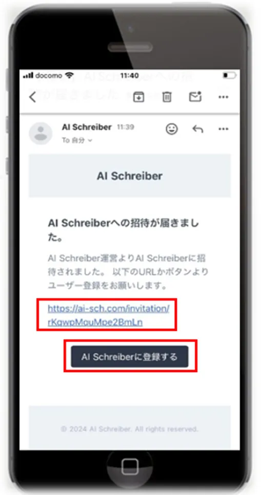 事前にお伺いしたメールアドレスへ下記のような招待メールを送らせていただきます。