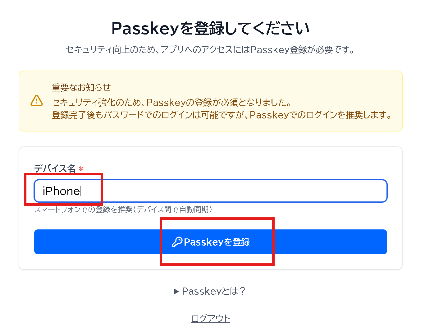 ステップ3: パスキーを登録する¶