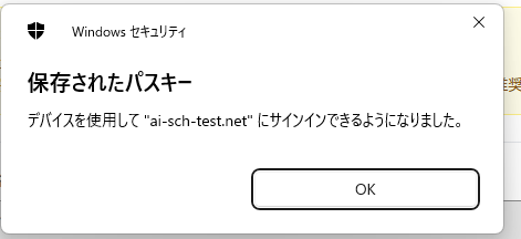スマートフォン側で「パスキーを保存」をタップしてパスキーを保存します。パソコン側が下記の表示になれば完了です。