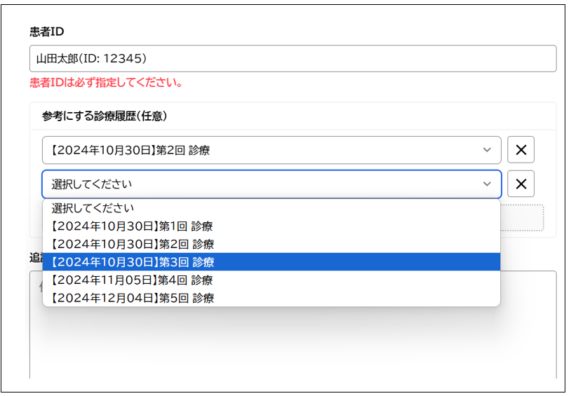 参考にすべき診察(カルテ)を複数選ぶこともできます。