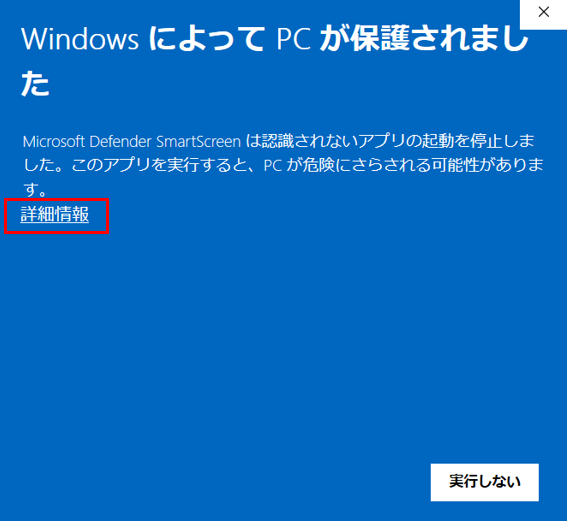 開くと下記の表示が出ますので詳細情報をクリックしてください。