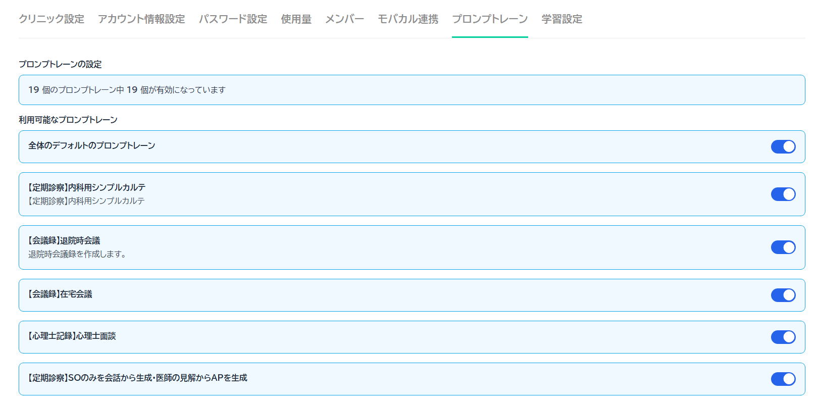 プロンプトレーンは、「AIにどんな考え方・文体で動いてほしいか」をまとめた"きまり"のセットです。たとえば、一般診療用・専門科向けといった用途ごとに、複数のレーン(セット)が用意されています。
